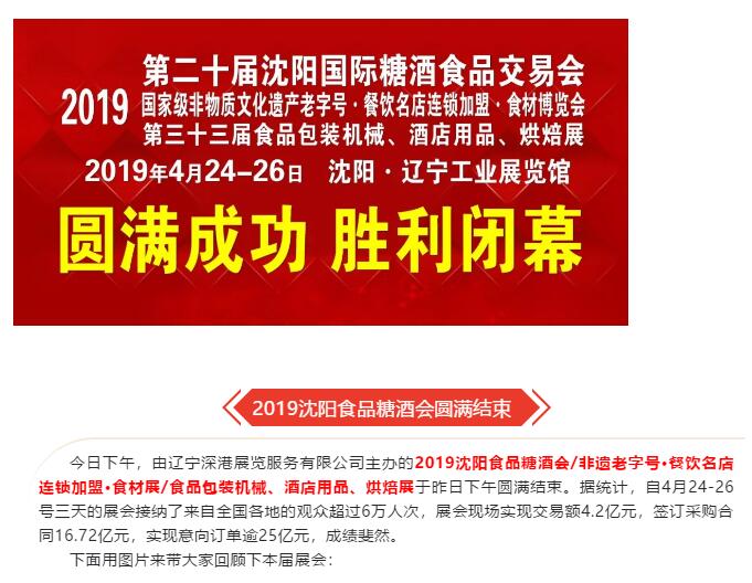 | 2019沈陽(yáng)糖酒會(huì)/非遺老字號(hào)·餐飲名店連鎖加盟·食材展/食品包裝機(jī)械、酒店用品、烘焙展勝利閉幕! | |