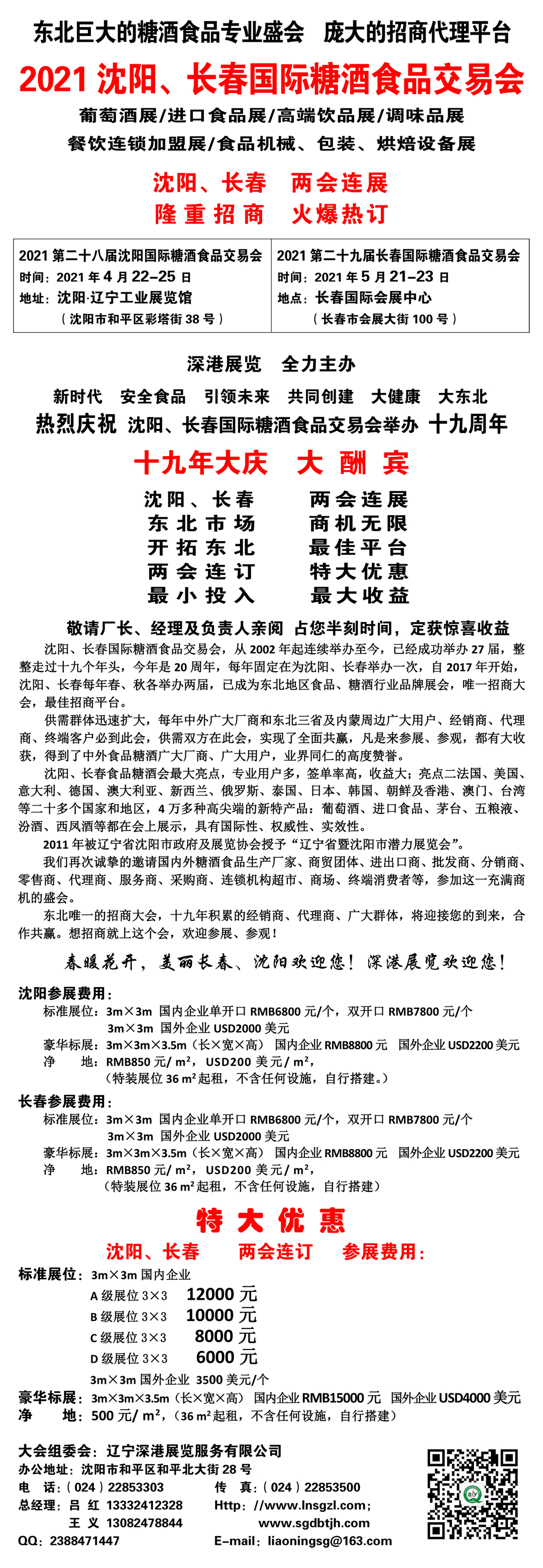 | 【兩會(huì)連展】2021沈陽、長春國際糖酒食品交易會(huì),兩會(huì)連展,特大優(yōu)惠 | |